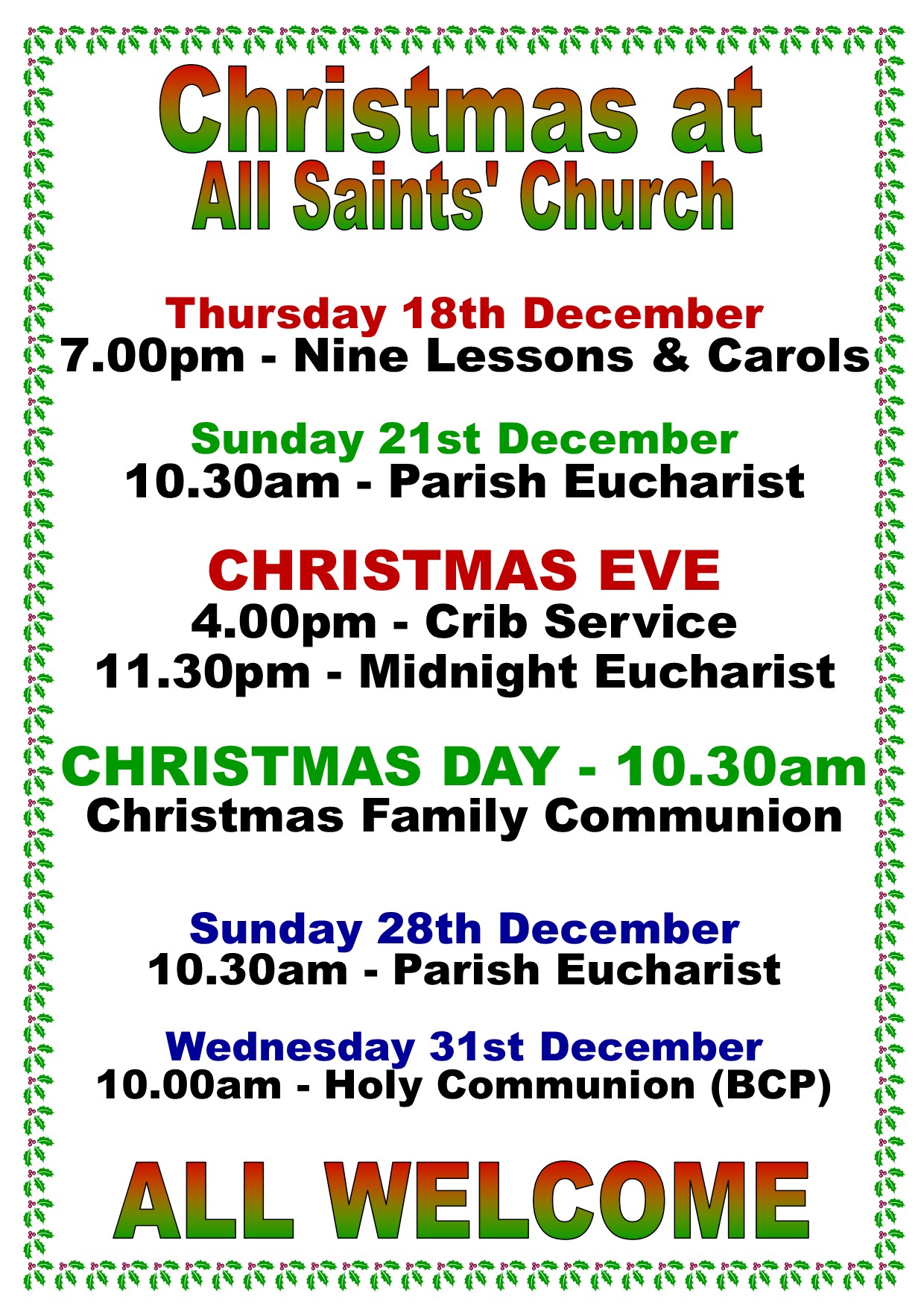 Details of services at All Saints' each month :-