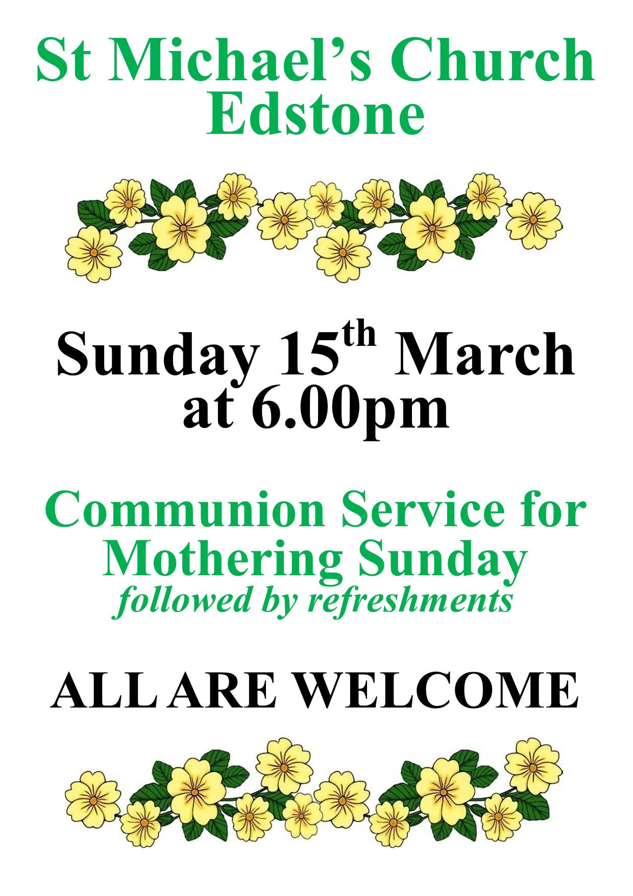 Regular services will be held on the First Sunday (Evening Service) and Third Sunday (Holy Communion) of each month at 6.00pm.